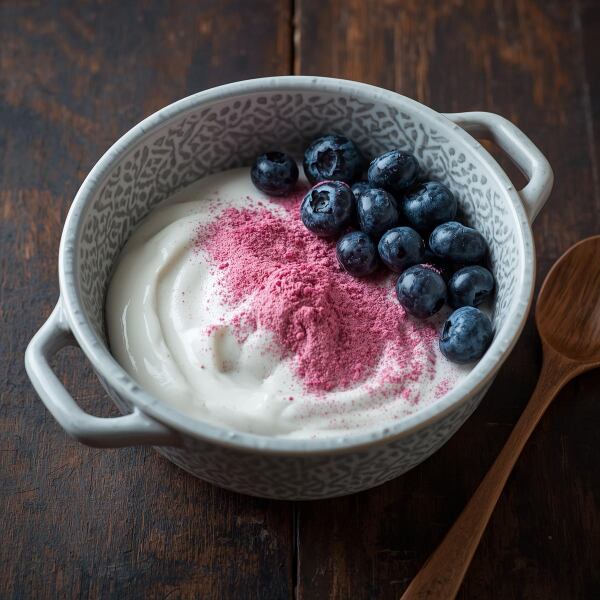 「BLUEBERRY KISS」は、香料や着色料を使わず、フリーズドライの果実そのものを贅沢に閉じ込めたフレーバーシュガーです。ヨーグルトやトーストにひとさじ加えるだけで、ほんのり天然の甘酸っぱさが広がります。